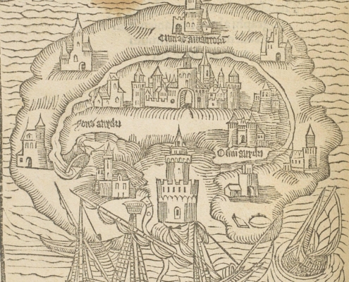 In witziger Weise entwirft der Autor dabei eine Erzählung, die vor politischen Ideen, zeitkritischen Anspielungen und Freude am literarischen Spiel nur so strotzt. An Platons Atlantis-Mythos orientiert „erfindet“ Morus darin nicht nur eine Insel (nach deren Lage er leider vergessen hat zu fragen), sondern auch den Begriff der „Utopie“ und die Grundidee des Kommunismus.